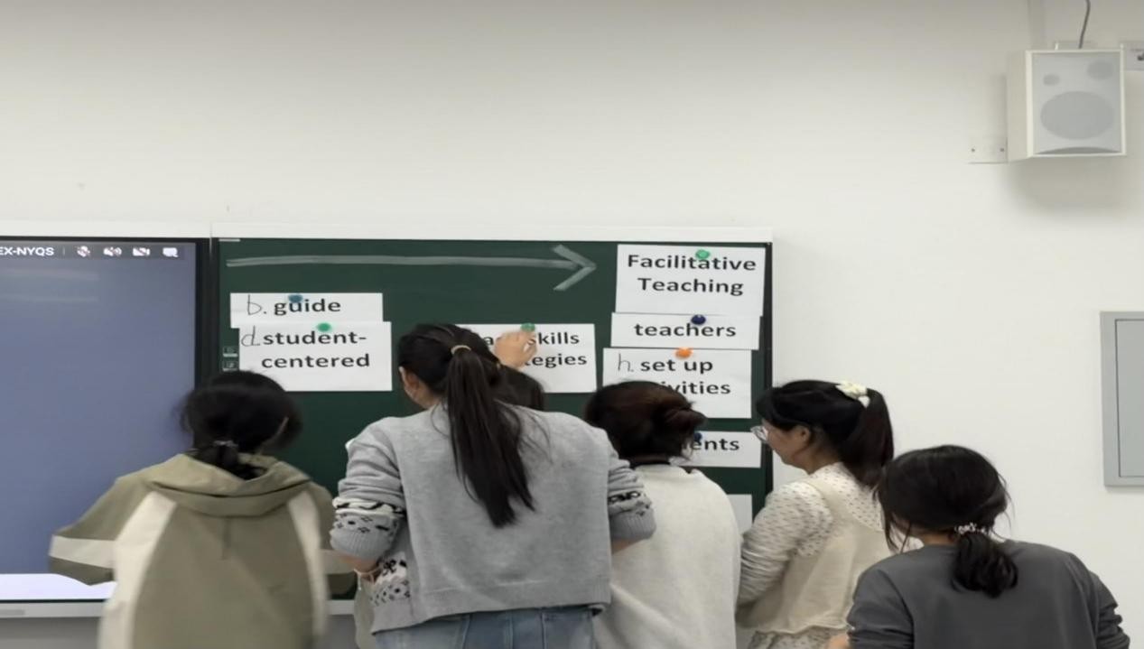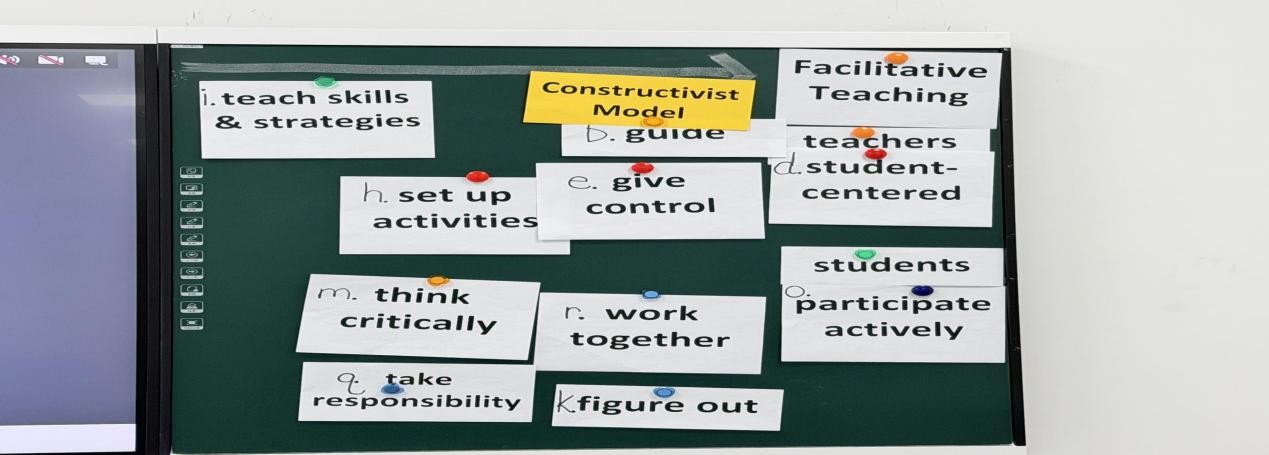 活动尾声,Melissa博士指导学生以小组为单位,结合给定教学材料,判断不同学段师生活动所对应的教学模式(传授模式或建构主义模式)。通过实例分析与集体研判,学生对两种模式的内涵把握更加精准,进一步明确了未来课堂教学应优先采用建构主义指导下的教学活动,以更有效地促进学生全面发展。